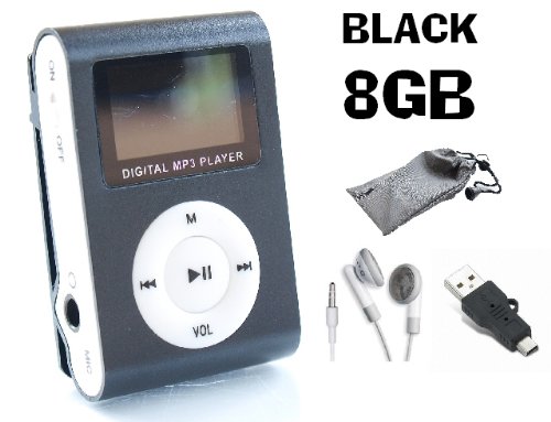 Affordable yet high quality Mini Clip mp3 player with 8GB internal memory and LED Screen. Listen to your playlist or the radio. Read an ebook or add to the contacts telephone book. Included are the earphones, USB adapter for charging and file transfer, and a stylish gift bag.